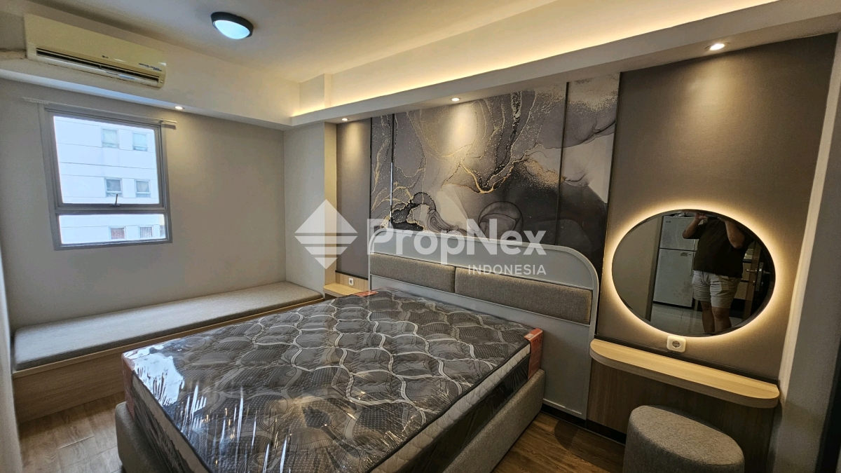 Unit bagus, New Full furnished. 2 BR dijadikan 1 BR , jadi lebih luas. view pool. Dpt 2 AC,kulkas 2 pintu, tv 32 inc,kompor tanam, penghisap,dispenser, sofa bed 80x200, spring bed 160x200