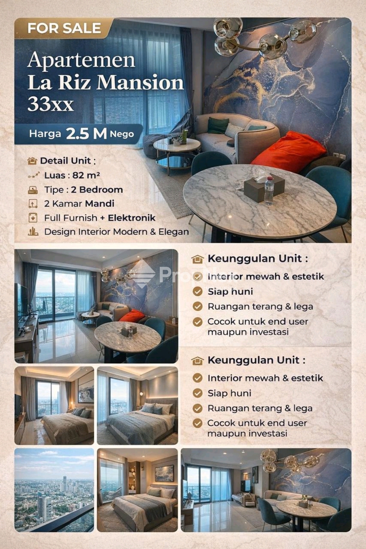 Apartemen Mewah 2 BR Full Furnish La Riz Mansion Surabaya Barat.