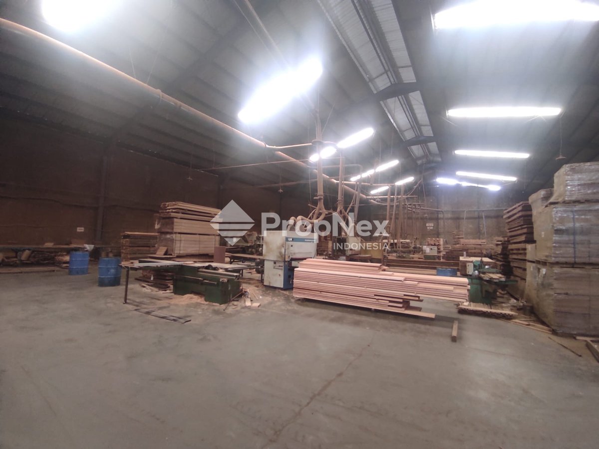 Sudah ada ijin industri Kapasitas produksi 10 kubik per mesin per hari Akses kontainer 40feet Note Termasuk Mesin-Mesin 3 Sanding 3 Moulding 1 Double planner 5 Single rip 4 Cross cut, 1 Finger joint 2 laminating 4 Forklift 1 Kompresor 1 Panel Saw Blower
